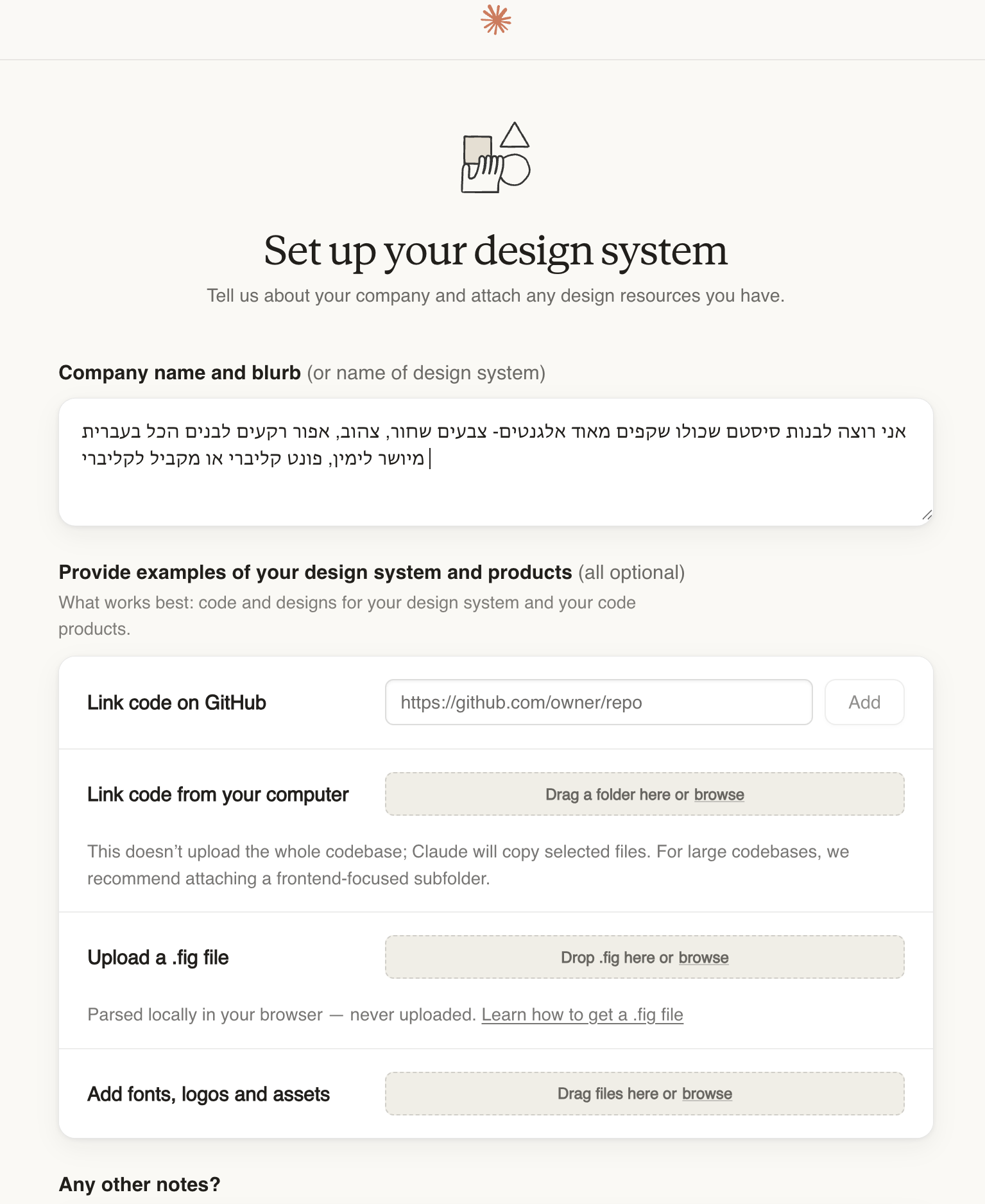 אם תרצו לבנות בתוך הכלי סיסטם עיצובי מאפס, הוא יעביר אתכם תהליך של בניה, חשוב להגיד כבר בשלב הזה תוכלו לספק לו גם הנחיות ב״פריסטייל״ וגם חומרים שמהם הוא יקיש ויבין איך תרצו לבנות את התוצר. כמו שאמרתי ממקודם, ניתן גם להטעין לו סיסטם עיצובי שלכם ולהגיד לו להתחיל ולבנות את החוקיות ממשהו קיים.