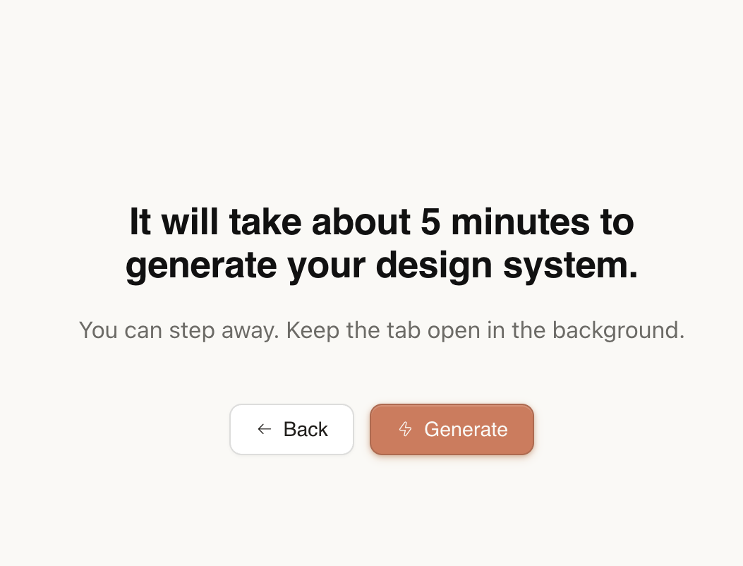 התהליך של בניית הסיסטם העיצובי, בין עם על סיסטם קיים או חדש לגמרי- לוקח כחמש דקות להתבשל במערכת.