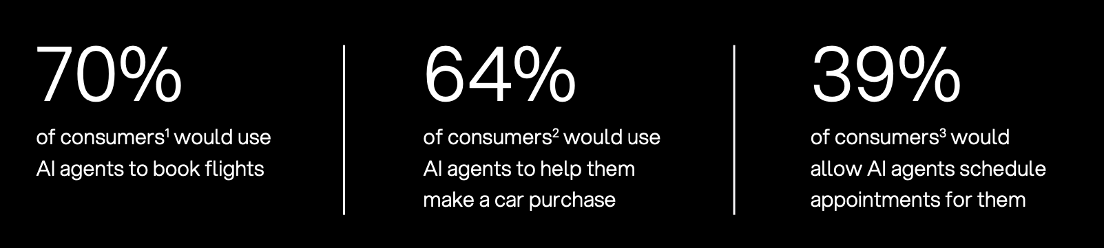 השינוי הגדול מתחיל מההבנה שAI Agents פועלים דרך תהליך מוגדר שמאפשר להם לקבוע מטרות, לאסוף מידע, לתכנן פעולות ולבצע אותן באופן עצמאי. בניגוד לתוכנות מסורתיות שעוקבות אחר הוראות סטטיות, הם מסוגלים להסתגל באופן דינמי על בסיס נתונים חדשים ונסיבות משתנות. התהליך מתחיל בקביעת מטרה שנקבעת על ידי המשתמש או טריגר חיצוני. מהנקודה הזו, הסוכן רוכש מידע רלוונטי, מתכנן את הצעדים הנדרשים ומבצע את המשימות באופן אוטונומי. הוא מנטר את ההתקדמות ומתאים את הגישה שלו בזמן אמת. השוק צפוי להתפתח בצורה דרמטיתית. עד 2030 הוא צפוי לגדול ל-47.1 מיליארד דולר, וזה לא מקרה. הסטטיסטיקות מראות שהצרכנים מוכנים לאמץ את הטכנולוגיה הזו: 70% מהם יהיו מוכנים להשתמש בAI Agents להזמנת טיסות, 64% לרכישת רכב, ו-39% לתיאום פגישות.