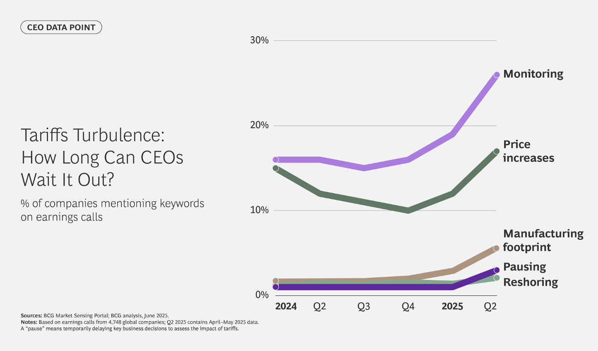 בצד השני של המטבע, המחקר גם מראה שחברות הופכות זהירות יותר כשמדובר בקבלת החלטות אסטרטגיות גדולות, בעיקר בגלל אי הוודאות סביב מכסים והתחזקות של מגמות בעולם. המחקר מדגיש שההמתנה הזו יכולה ליצור בעיה אמיתית, כי ככל שחברות חוכות יותר לקבל החלטות אסטרטגיות, כך הן מסתכנות בזה שהמומנטום של הצמיחה שלהן ייפגע.